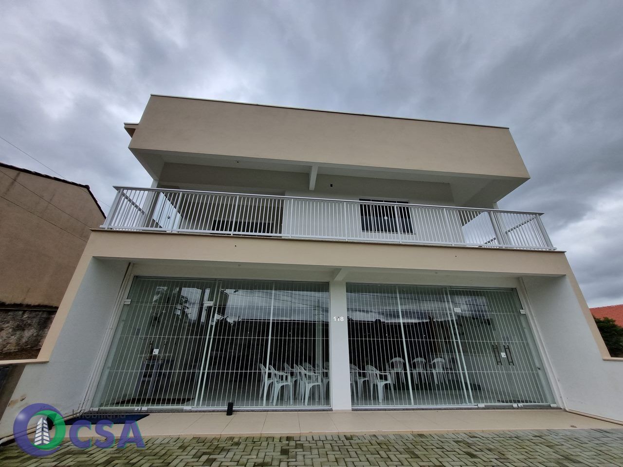 A sala comercial apresenta área útil de 136 m² e o apto andar superior área de 147m2. O apto tem 03 quartos, 02 banheiros, sala/cozinha e copa integradas. Varanda com churrasqueira, 01 sala para depósito. Cozinha com espera para ilha. Piso porcelanato, sancas de gesso, soleiras de granito e garagem para dois veículos.