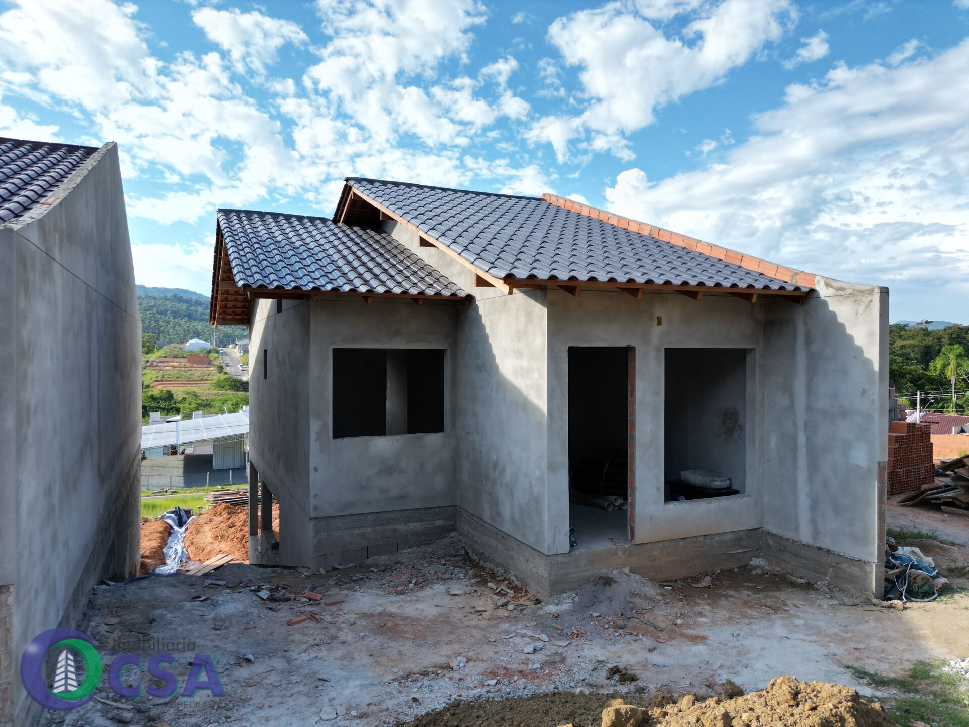 Casa de alvenaria em construção , com 83,31 m² de área construída, o imóvel conta com: